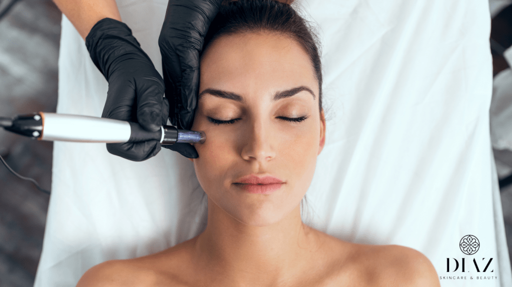 Dermapen förs över huden och skapar tusentals mikroskopiska kanaler, vilket gör att huden kan absorbera näringsrika serum mer effektivt.
