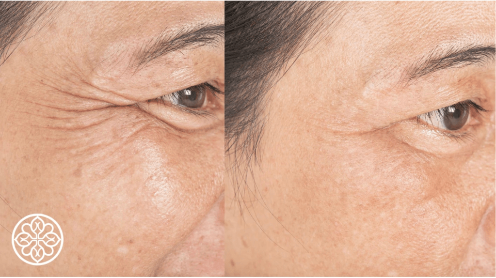 Genom att förbättra hudens kvalitet från insidan minskar fina linjer och rynkor synbart, vilket ger ett föryngrat utseende.